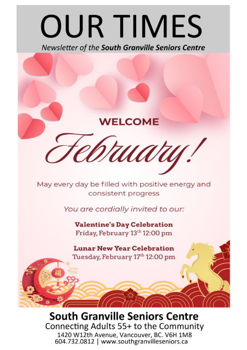 Prefer reading a physical copy? Pick one up for free at the Centre or get a copy of Our Times mailed to you for $15 annually. You can pay at reception or send a cheque (payable to South Granville Seniors Centre).
